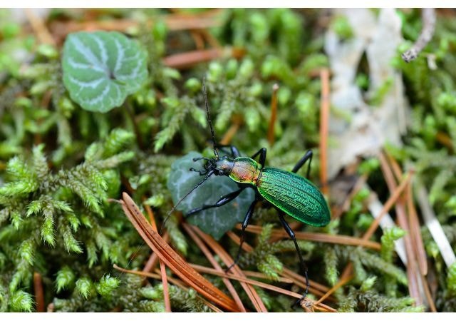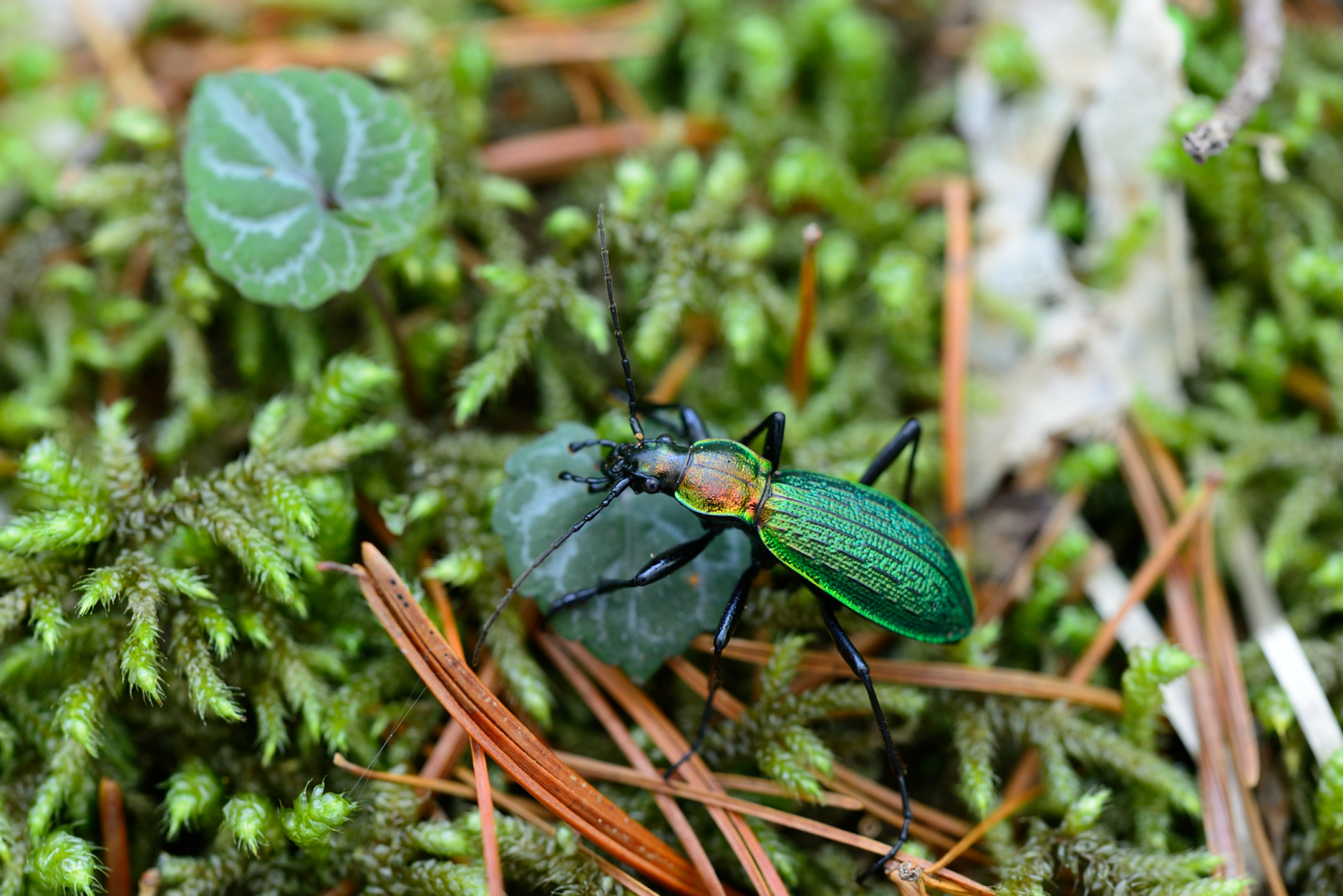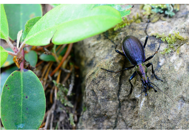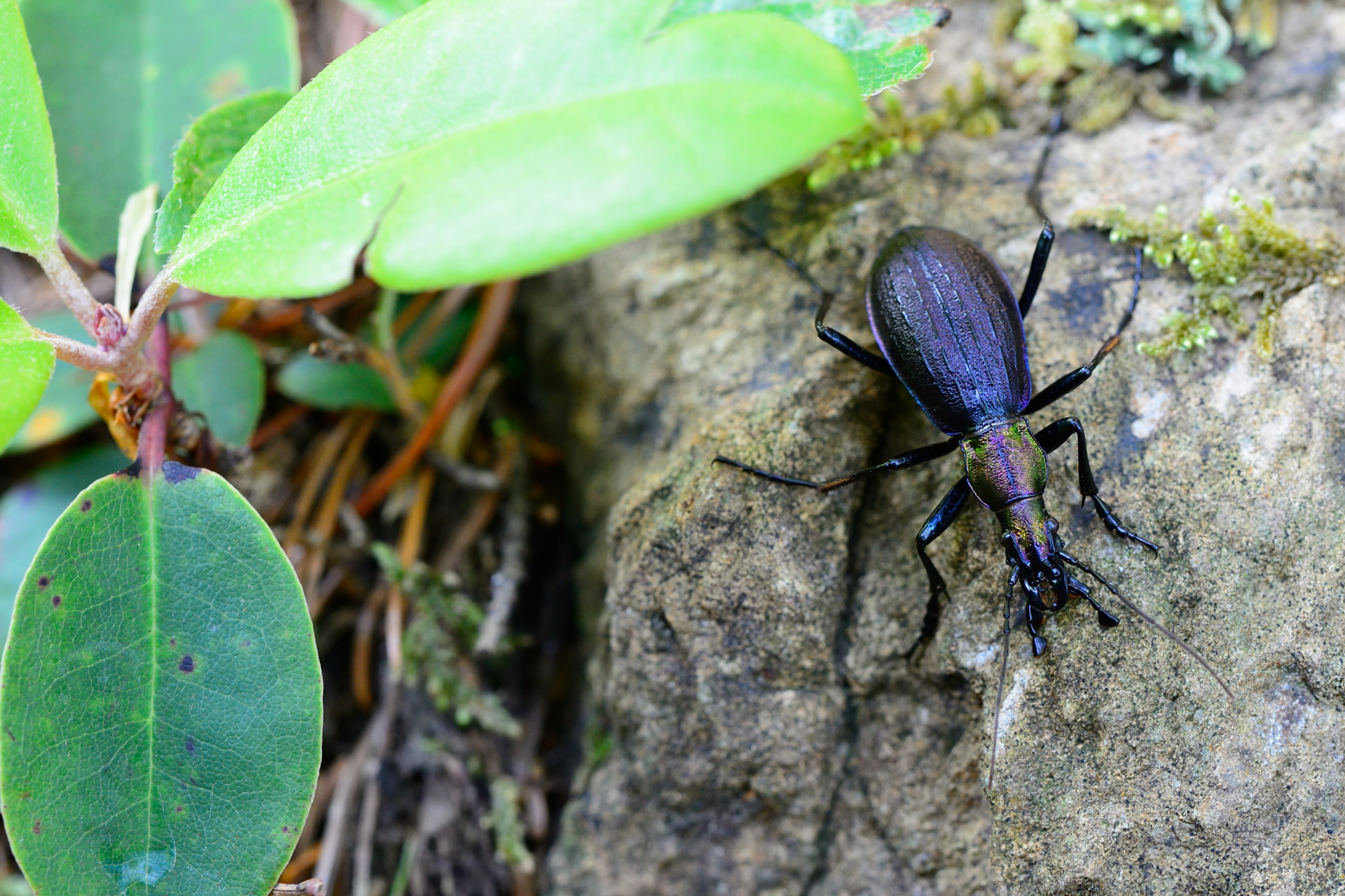 アポイ岳周辺では渋い紫色に輝くオオルリオサムシ