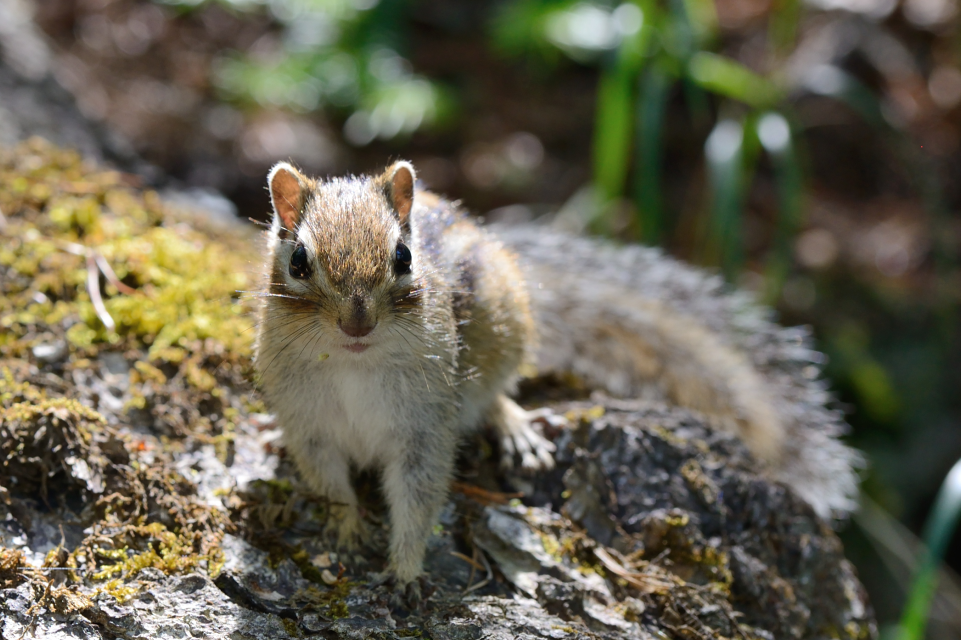 カメラに近づいてきて覗き込む好奇心旺盛なシマリス